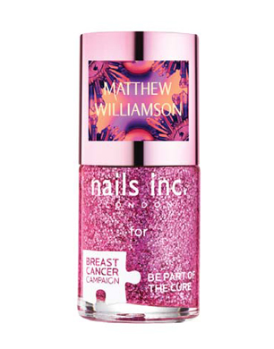 Nails inc have teamed up with Matthew Williamson and Poppy Delevingne to create two limited edition polishes for Breast Cancer Campaign. £1 will be donated from every one of the limited edition pink glittery polishes sold. Both Matthew and Poppy designed a stylish cap for the pink glitter polishes, helping to give a stylish edge and promote extra awareness into the disease. Wear as a statement nail or add glitter to all digits.