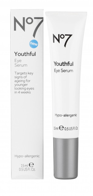 Mike Bell, Boots’ Scientific Skincare Advisor says “As we get older, skin components such as collagen and fibrillen decline leading to a reduction in skin strength, elasticity and volume. The skin around our eyes is the thinnest and most delicate on our face meaning that it is more vulnerable to the physical signs of ageing than skin in other parts of our body. The new No7 Youthful Eye Serum contains a fusion of anti-ageing ingredients to help restore these structural elements over time as well as soft focus spheres to instantly give the appearance of younger looking skin.”