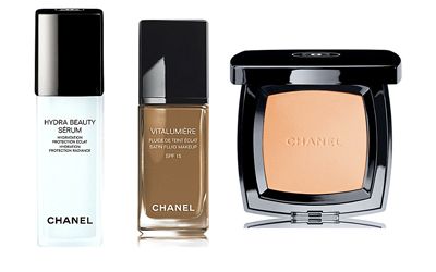 Chanel Hydra Beauty Sérum, Vitalumière Satin Smoothing Fluid Makeup, Poudre Universelle CompacteStep 2. Eyes