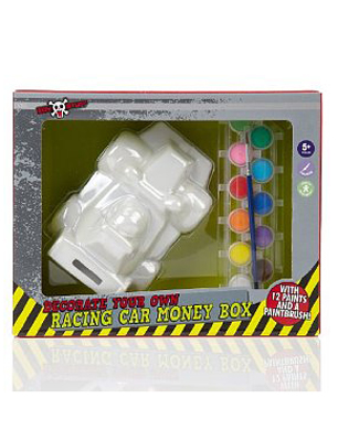 Keep his pocket money extra safe in this racing car money box. What’s more, it comes with a selection of 12 paints and a paintbrush to create his own unique design.