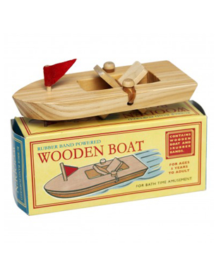 These fabulous rubber band powered wooden toy boats are old fashioned favourites. Wind up the paddle, put the boat on water, then watch it go.