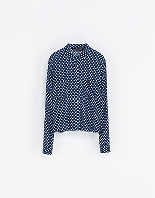 Zara’s polka dot shirt has go-with-everything appeal. Tuck into a leather mini or wear loose with skinny denim and a biker.