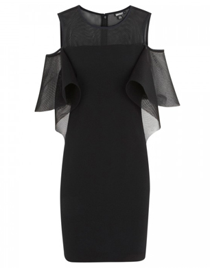 This LBD combines two of this season’s biggest trends, sheer and sporty. Team with a pair of statement heels and a pop of pink lipstick.