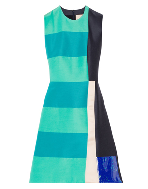 Turn heads at the Christmas party with Roksanda’s colour blocking, lacquered frock. Pair with a sleek blow dry and classic courts.