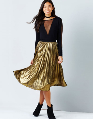 GIRLS ON FILM GOLD MIDI PLEAT SKIRT