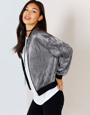 GIRLS ON FILM SILVER CRINKLE BOMBER JACKET
