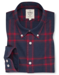 Navy Red Large Check Button Down Casual Slim Fit Shirt