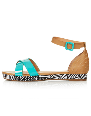 Now that the sun is shining, it’s time to take your feet out of hibernation. We love Topshop’s vibrant turquoise acid sandals with contrast Aztec inspired print. Great for a city look paired with knee length shorts and a denim shirt.