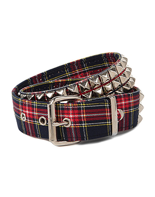 Nod to the tartan trend with some punkish accessories. Wear NY label, Tripp’s studded belt with black skinny jeans and a denim shirt.
