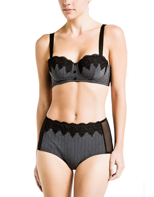 Sexy lingerie doesn’t always mean black – choose this charcoal set instead for an understated chic feel. The thicker straps will ensure you’re kept supported, whilst the high waist is ideal if you’re a little self-conscious around your middle.