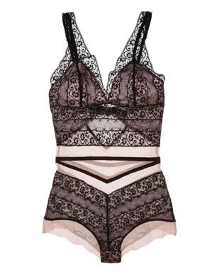 Luxury needn’t stop when the lights go out so invest in this sumptuously soft playsuit by Mimi Holliday. Pair with a matching silk robe and a little red lipstick.