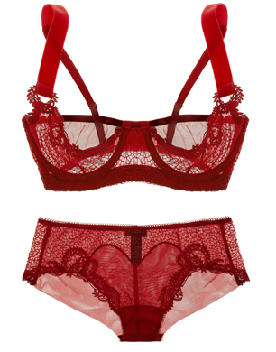 Channel your inner pin-up girl and show off your curves with La Perla’s red lace. This matching set will update your underwear drawer and certainly please your man this February.