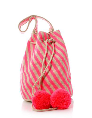 Inspired by the vibrant prints of South America, this playful pompom bag will brighten up classic denim shorts and a white tee.