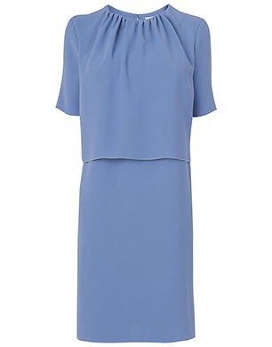 Chic and simple with a nod to the 50s. Pair this soft blue dress with silver or pastel sandals and an oversized clutch. Finish off the look with a pastel print silk scarf.