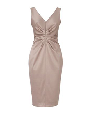 A truly sophisticated choice of occasion dress. A red lip and nude accessories are all you need for this little number.