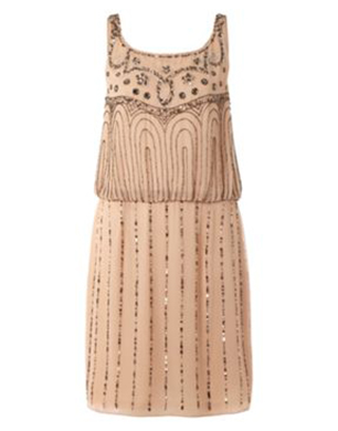Channel the Great Gatsby look with this vintage inspired beaded dress. Pair with Mary Jane heels, pearls and a gold box clutch.