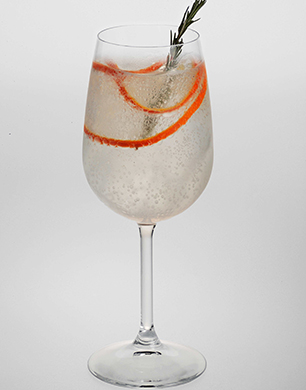 A sprig of rosemary and an orange peel twist is all that is needed in this cocktail recipe. Adding a gentle fruity taste to the cocktail, none of the flavour of the gin is lost in this drinks recipe.