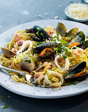 Spice up the usual weekday menu with this seafood linguine recipe. Perfect for those who can’t get enough of mussels, clams and prawns, serve with a sprinkle of Parmesan, a drizzle of lemon juice and some fresh parsley.