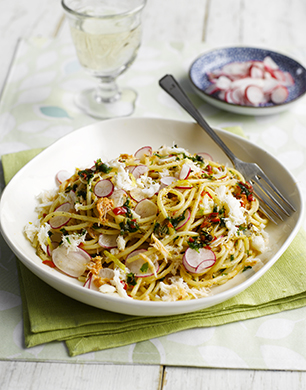 Still in season, make sure to indulge in radishes with this recipe for spaghetti with crab, lemon, chilli and radish. Including a little bit of everything, this recipe makes for the perfect dinner party main or family treat.