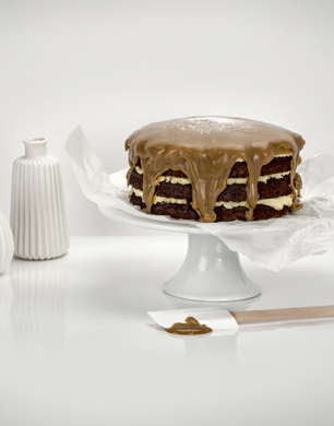 - Spoon the syrup gently on to the top of the cake, allowing a little to dribble down the sides.
