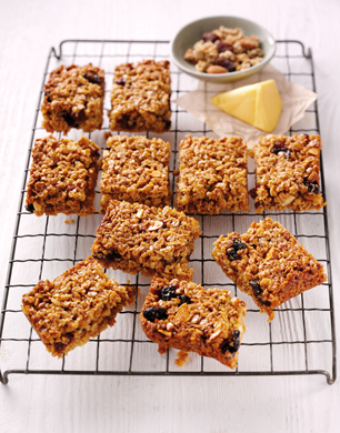 - Bake for 20-25 minutes, until golden. Allow to cool completely in the tin, then turn out onto a chopping board and cut into 12 bars.