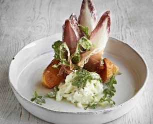 • 8 leaves radicchio or red chicory, split in two