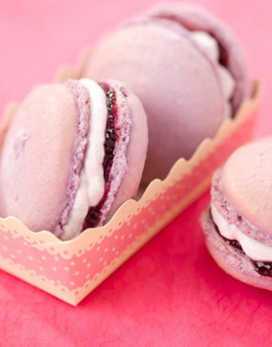 These delicious bite size blackcurrant macaroons will be a welcome sweet treat amongst guests at your party. They also make a great gift.