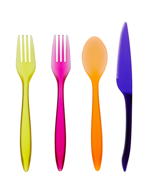 Inject rainbow shades into your alfresco dining with this colourful cutlery set.