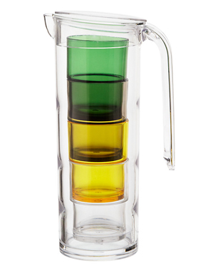 This pitcher and glasses set is perfect for multitasking mums trying to make the most of the summer sun and pitching refreshments for the family. Complete with four coloured stackable glasses and a pitcher, this set takes up little room in the cupboard, making it the perfect addition to uncluttered homes.