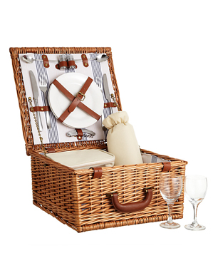You can’t have a picnic without a wicker hamper and this traditional style comes complete with all the picnic paraphernalia. Paired with the perfect summer dress and the weather and date to match, this hamper comes complete with plates, wine glasses, cutlery, bottle opener and even a salt and pepper set.