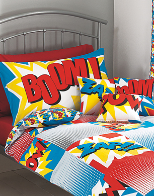 We’re going superhero crazy for this duvet set emblazoned with punchy slogans “Boom, Pow and Zap”.