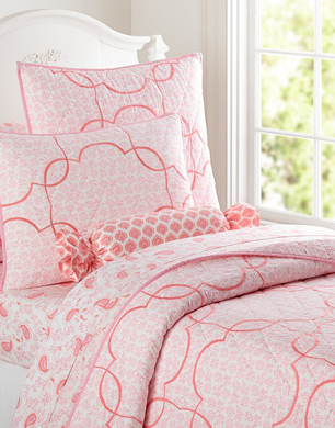 If your little princess likes pink, then she’ll love this beautiful lattice embroidered bedding.