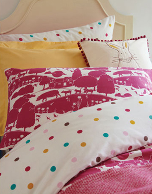 Add a touch of farmyard chic into your little ones interiors with this reversible print design featuring a country heritage scene on the front and multi-coloured spotty design on the reverse.