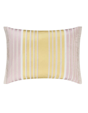 Sophisticated and feminine, this orchid and buttercup striped silk cushion makes for the perfect accessory for your couch or your bed.