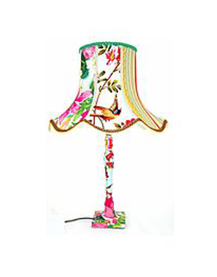 A unique, upcycled piece guaranteed to make a statement in your home. The fabric is applied to the stem in a patchwork fashion and finished with a hardwearing matt sealant for durability. A piece for the quirky home.