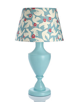 Made from sustainable wood this traditional shape lamp base with linen lampshade will look beautiful in soft feminine rooms and particularly would lend itself to homes with a vintage feel.
