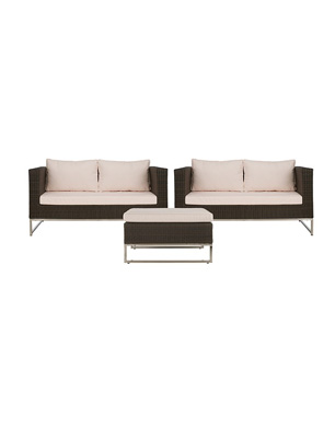 Made from synthetic wicker, this contemporary sofa and ottoman set is comfortable and stylish. The chrome legs offer a sophisticated and elegant look whilst the cream seat pads add a warm look.