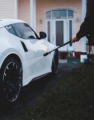 Chemical solutions can be added to pressure washers for deeper cleaning, particularly on stubborn surfaces like decking, patio or brick walls. One pro tip is to ensure the correct pressure-washing chemicals are used for each surface. There will be solutions specially formulated to work on cars, allowing the pressure washer to be turned down slightly while still providing a deep clean.