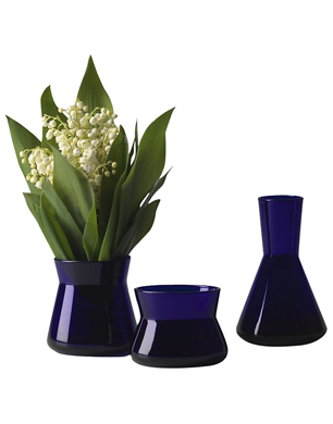 Designed by the Swedish architect Jonas Wagell, this trio of vases are small enough to place on the dinner table as well as a side table filled with wild flowers.