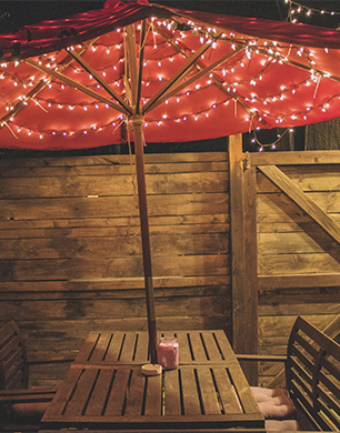 Turn your garden parasol into a magical canopy by adorning it with fairy lights. Battery-powered LED lights are readily available and come in various shapes and colours. String them along the ribs of the parasol for a soft, enchanting glow that creates a cosy ambiance in the evening. Not only does this add a decorative element, but it also extends the functionality of your parasol well into the night.
