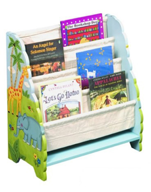 This colourful book case with canvas pockets will bring any bedroom or playroom to life.