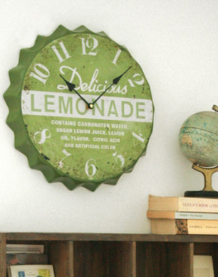 Add a nostalgic charm to your kitchen with this giant lemonade top clock. Stick with the theme and start collecting kitchen wear in shades of lemon and lime.