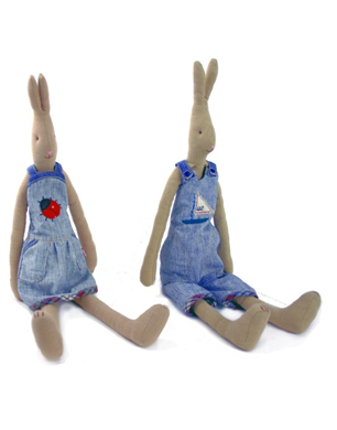 We love the floral fabric detail on this classic, old-fashioned style bunny.