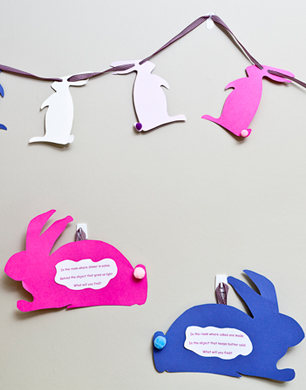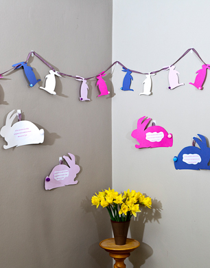 Hazel Ball, founder of interiors website Velvet Brown lends us her top tips on how to create a fun, bunny bunting game to play with your little spring chickens this Easter. The bunny theme can be swapped for anything from woodland creatures to pirates – perfect for a treasure hunt at your child’s next birthday party.