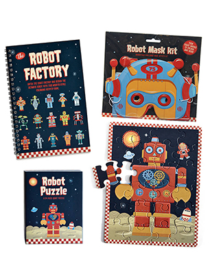Hours of fun will be had with this robot inspired set, from colouring in to creating your very own robot mask.