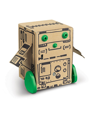 Art and science meet in this adorable, eco-friendly toy. Use paints, glitter or whatever you want to decorate his cute cardboard box exterior.