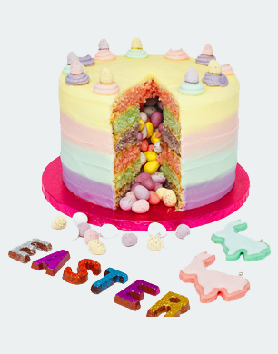 A rainbow cake with a Mini Egg surprise, this colourful Easter cake comes complete with vanilla buttercream frosting and spring pastel colours for the ultimate teatime treat.