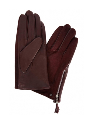 Bordeaux calf hair and leather gloves