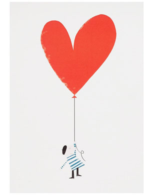 Hearts can feel a little dated on a Valentine’s card but this little Parisian, complete with beret and Breton makes them chic again.