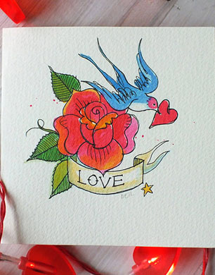 Debbie Bellaby Illustration Hand Painted Valentine’s Card